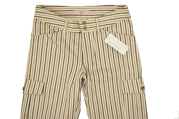 レディース ベージュ×ブラウンカラー ストライプ柄 カーゴパンツ