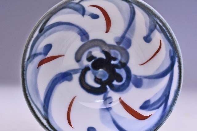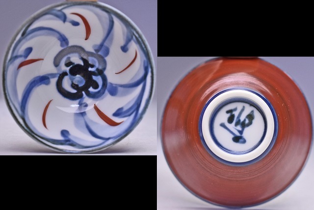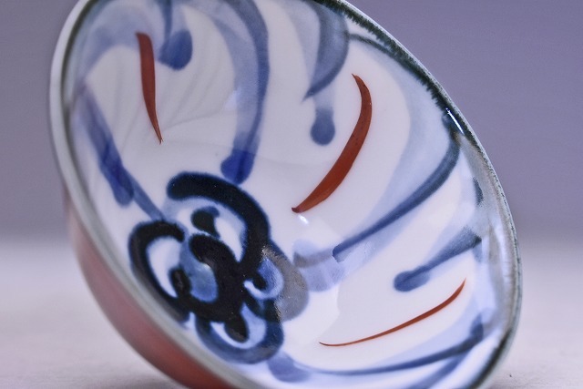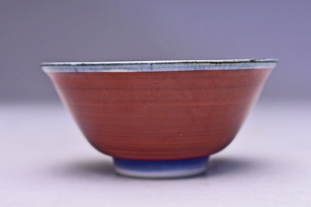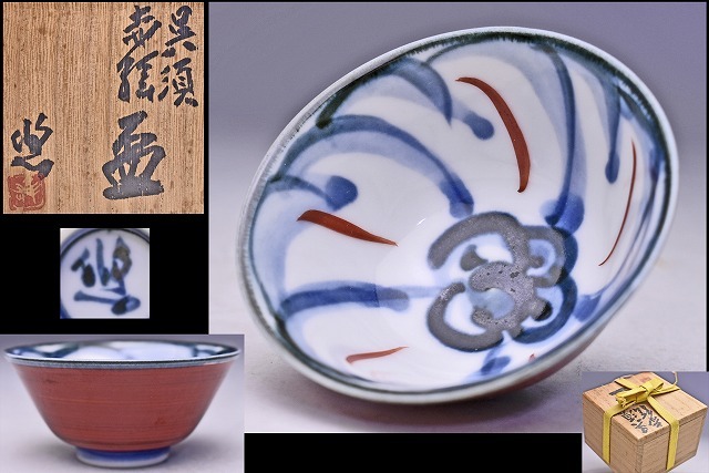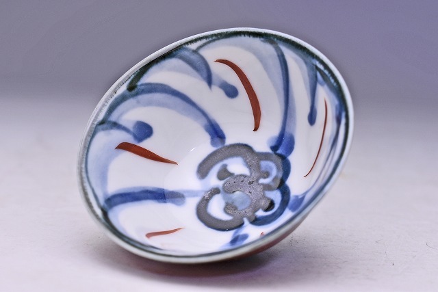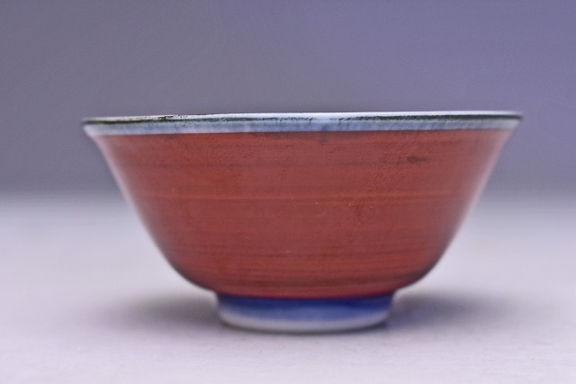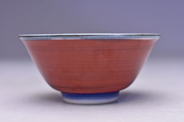 近藤悠三 ★ 呉須赤絵ぐい呑 ★ 共箱 ★ 人間国宝 ★ スピード感のある胴の赤に見込みの絵付が愛らしい逸品 ★検 近藤豊 近藤濶 ★