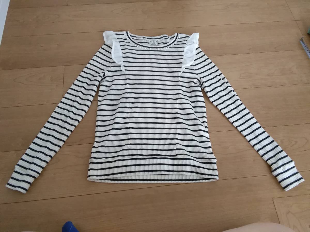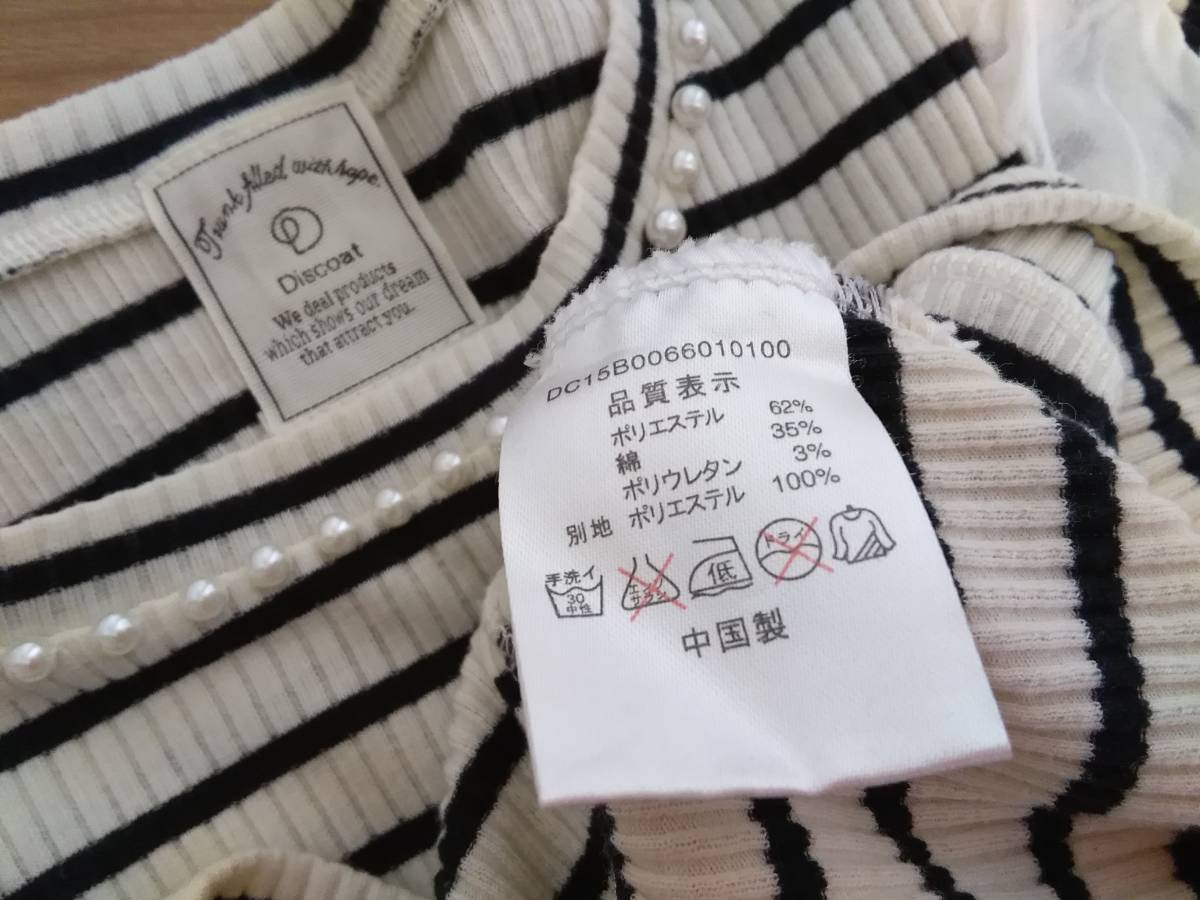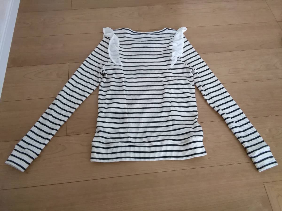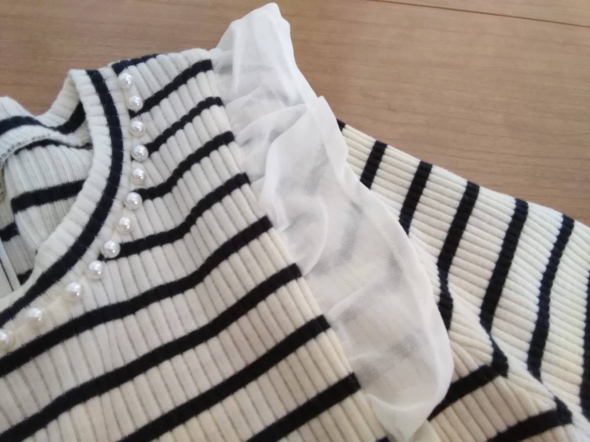 ディスコートDiscoat パール付 フリル デザイン 美スタイル リブ 長袖 ボーダー カットソー です。