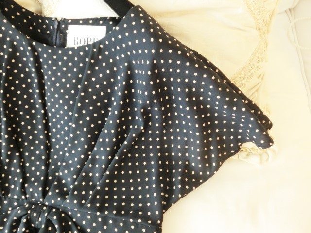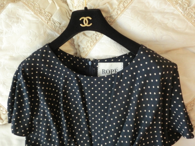 【大きいサイズ】◆美品◆ROPE ロペ◆ドット柄&おリボンの素敵なワンピース◆13号相当 | |||