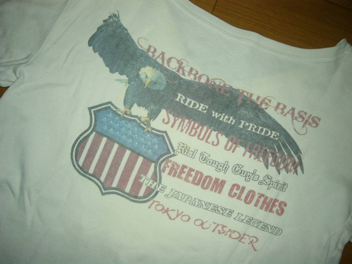 バックボーン BACKBONE カットソー M 白 Vネック Tシャツ イーグル /
