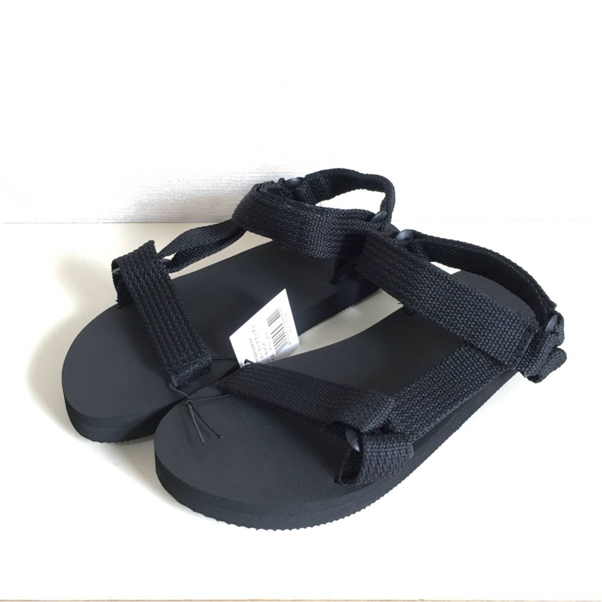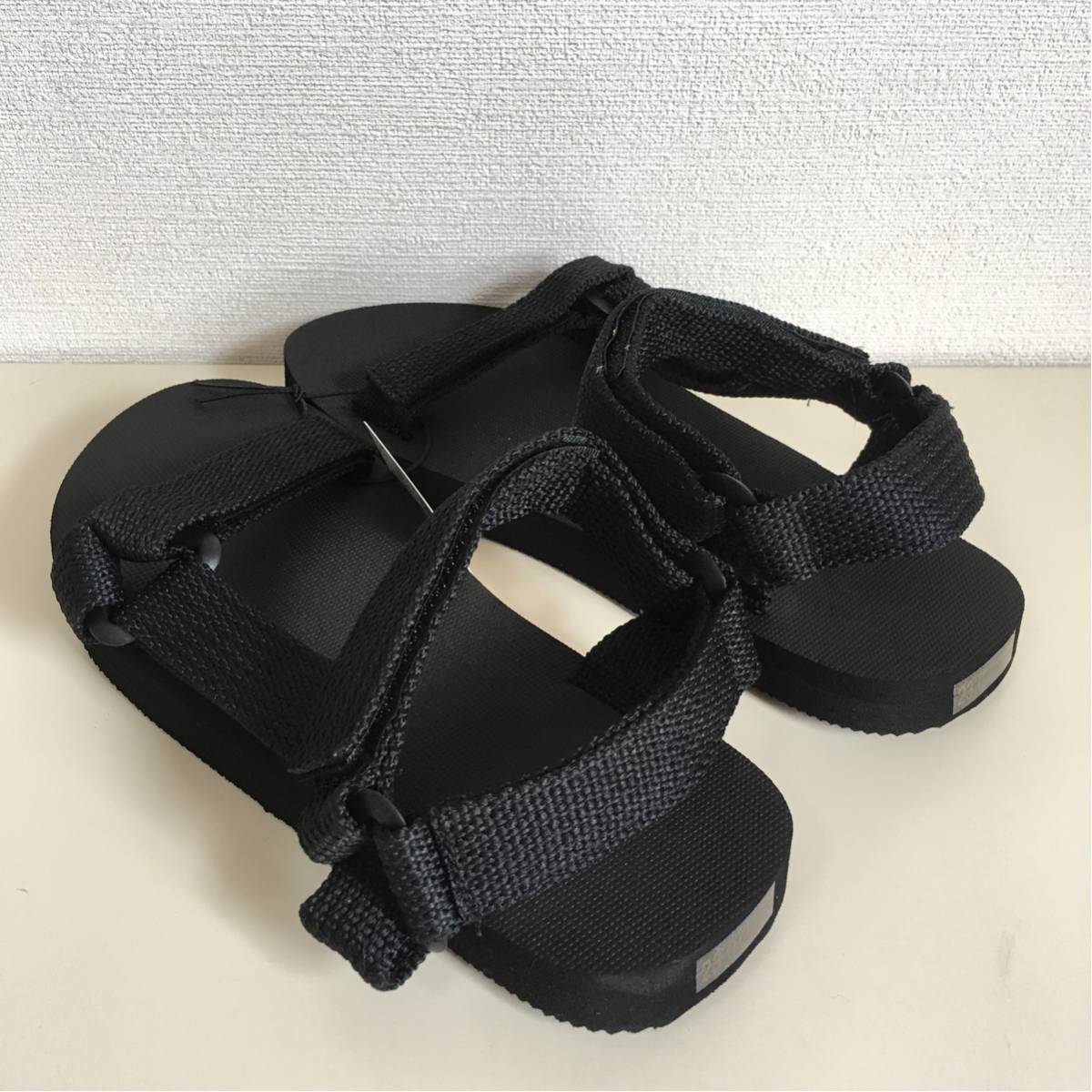 新品 ストラップサンダル 黒黒 23.5~24cm ノーブランド テバ スポーツサンダル ベナッシ benassi シャワーサンダル teva ベルクロ スポサン