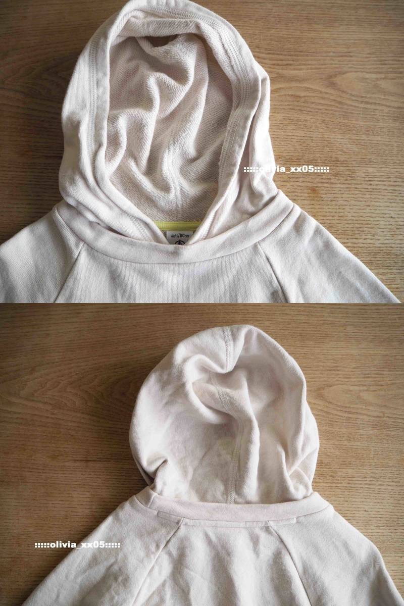 美品4ans4才/102cm「PETIT BATEAU プチバトー」フード付スウェットパーカー長袖プルオーバー<定価:7500円>100cmライトベージュ/送料660円
