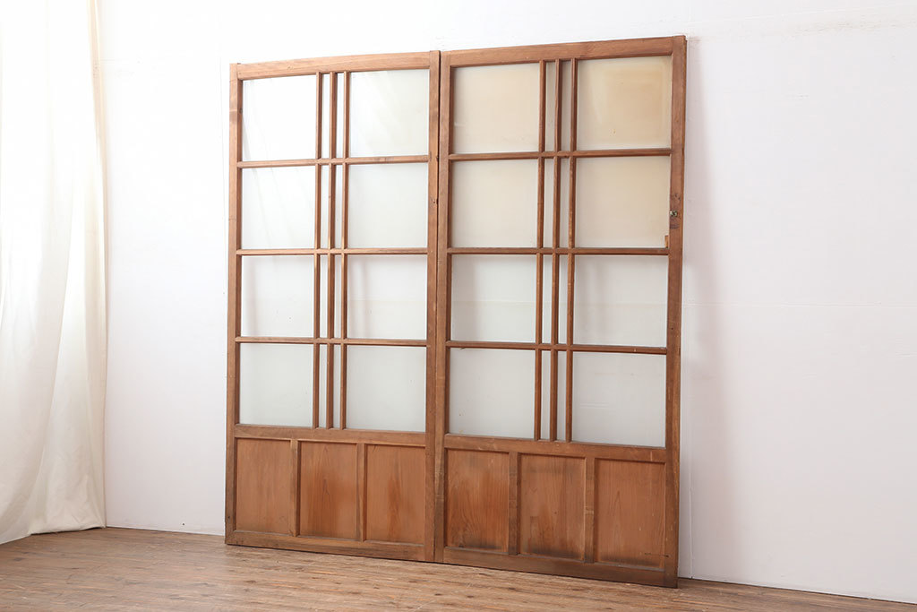 R-037088 アンティーク建具 昭和中期 シンプルさが魅力のガラス戸2枚セット(引き戸、建具)(R-037088)