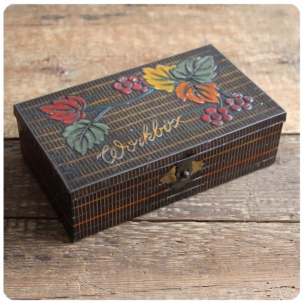 イギリスから直輸入したエンボスデ ザインが素敵なWORKBOX。蓋の開閉スムーズ。