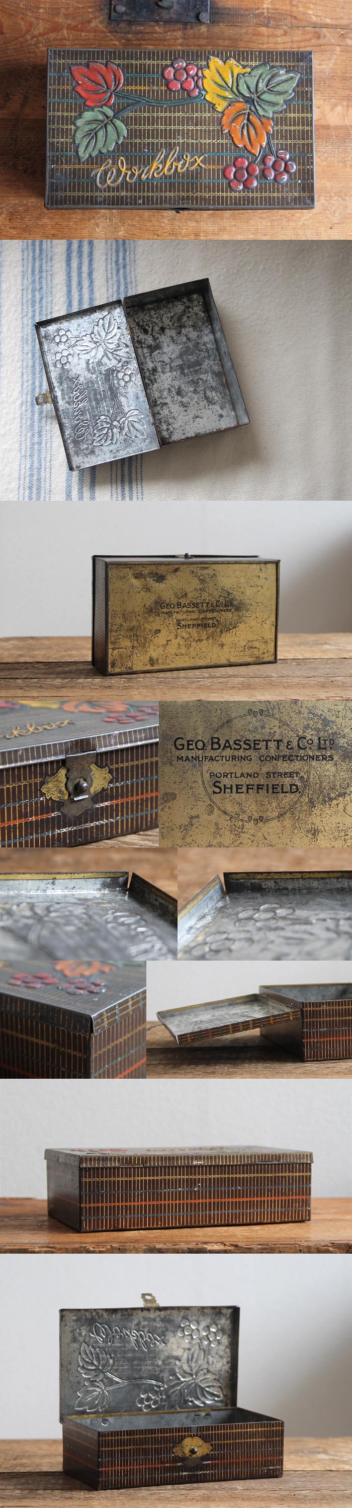 イギリス アンティーク ブリキ製 ワークボックス/収納缶/インテリア雑貨/ティン【Geo.Bassett & Co.Ltd】Y-872