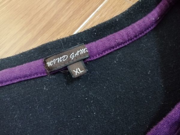 ■ MIND GAMES ■ Tシャツ カットソー トップス 長袖 レイヤード風 重ね着風 アーガイル パープル 紫×黒