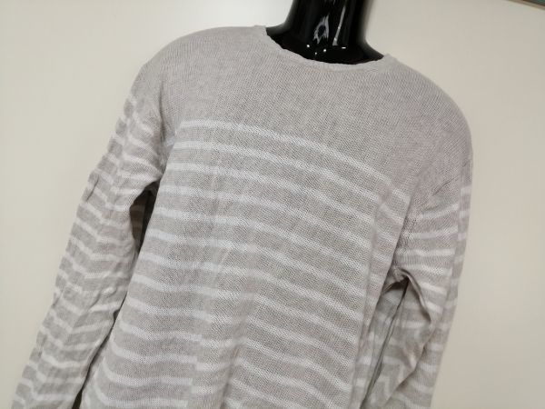 kkyj2425 ■ 無印良品 ■ ニット セーター トップス ボーダー ライトグレー コットン XL