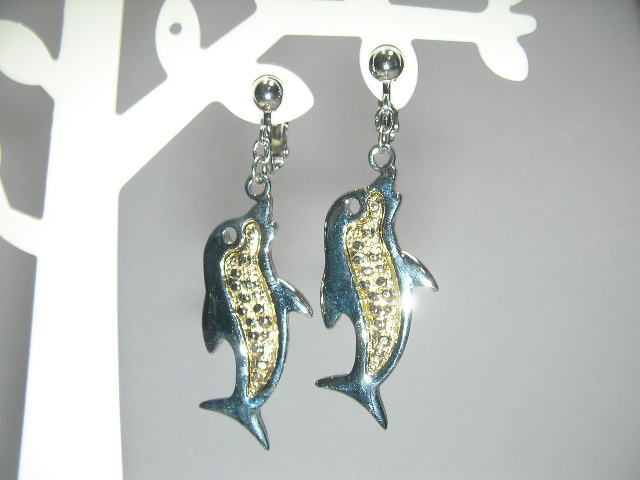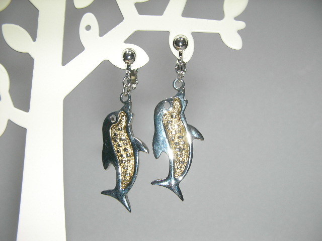 563♪イルカ風 かわいい動物デザイン イヤリング