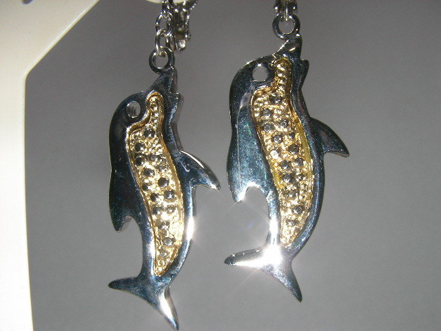 イルカ風の個性的な動物チャームがかわいいイヤリングです^^ノシ