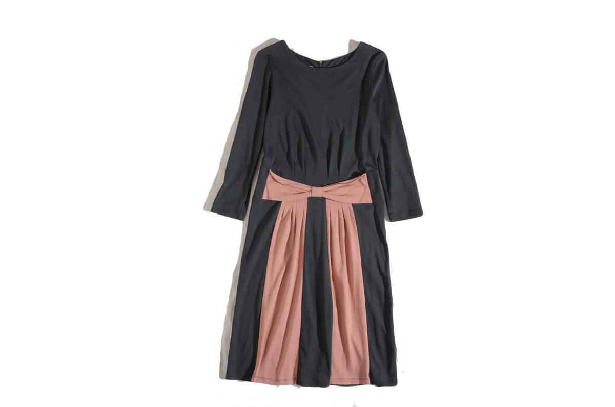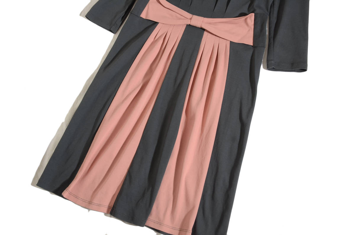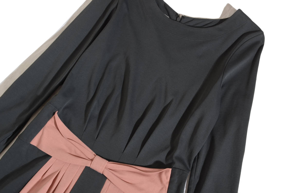 リボンも模したフロントのタックプリーツと配色がとっても素敵です