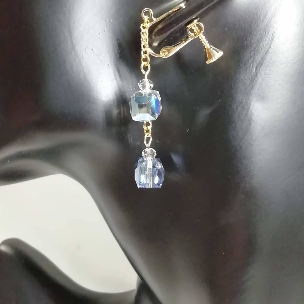 ★商品内容★ ★メタリッククリスタルブルービーズのハンドメイドイヤリング★ゴールド・上品・クリスタル・スワロフスキー・ブルー・ガラス・メッキ 大き目のキューブビーズと小粒のスワロフスキーを組み合わせた、 ゴージャスで上品な印象のイヤリングです*・**。.・*。・.*・**。 メッキ加工されたキューブビーズと 小粒のスワロフスキービーズが キラキラと光に反射して綺麗に煌きます*・**。.・*。・.*・**。 普段使いはもちろん、お出掛けにも お洒落のワンポイントにも最適です*・**。.・*。・.*。 【素材】 スワロフスキー5040クリスタル(オーストリア製)4mm キューブガラスビーズハーフメッキクリアー&ブルー7mm 喜平チェーンゴールド カンより垂れ下がる長さは、約4.5㎝です。 Eー555 ★商品状態★ ・画像と実物の色味が多少異なる場合があります。 ・緩衝材(プチプチ等)を使用し、防水梱包でお届け致します。 ★注意事項★ ***~ご購入前に必ずお読み下さい~*** ***商品について*** *一点一点心を込めて作っておりますが、手作りなため多少の歪み等あるかもしれません。 手作りの味わいと、世界で一つだけの作品とお考えいただければ幸いです。 *デリケートな商品ですので、強く引っ張ったりすると破損する事もあります。 お取り扱いにはご注意ください。 *写真も完璧な色合いの表現にはなっていない場合もあります。 *基本イヤリング金具は跳ね上げ式ネジ付きを使って作成しています。 *金属アレルギーへの対応はしておりませんので、ご心配な方はご遠慮下さいますようお願い致します。 *永くご愛用頂くために、ご使用後は柔らかい布等で軽く拭いてください。 ***ご質問について*** *ご購入前にお願い致します。 日中は仕事をしておりますので、ご返事が直ぐに出来ない場合がございます。 出来る限り早い対応を心がけますが、ご了承ください。 また、発送までには、お振込み確認後、翌日の発送を心がけておりますが、仕事の都合により2~3日程かかる場合がございます。(その際にはナビにてご連絡いたします) お急ぎの場合は、極力対応いたしますが、場合によっては対応致しかねる事もあります。ご了承下さいませ。 落札後4日以内にお手続き、ご連絡が無い場合は落札者都合で削除致します。 発送日指定・ご入金の予定が1週間以上先をお考えの方は、入札の前に質問よりご連絡くださいませ。 予めご了承の上、ノークレーム・ノーリターンでお願い致します。 | |||