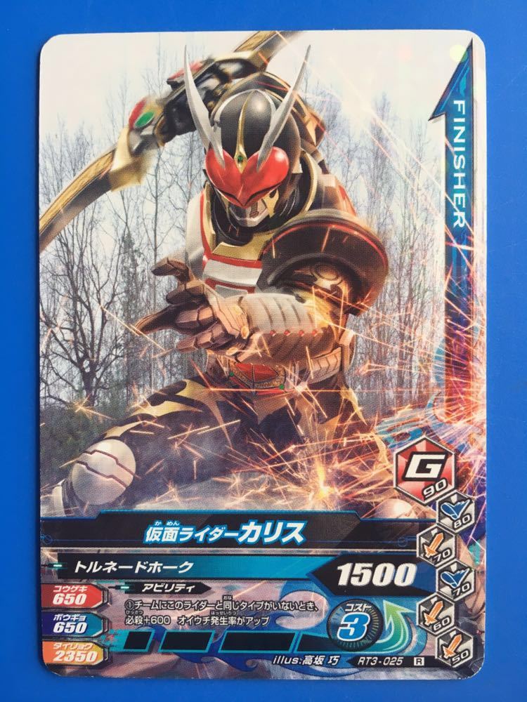 仮面ライダー、ガンバライジングの第RT3弾から、No.025《仮面ライダーカリス》の登場です。発送は、普通郵便を利用します。(特にご希望のない場合)おとりまとめも可能ですが、送料に変動する場合がございます。また、送料のご請求は、自宅での計量を基準にご請求させていただいておりますので、実際の金額と差異が出る場合もございます。予めご了承ください。他にも多数出品中です。まとめてこの機会にいかがでしょうか?ご質問お待ちしております。