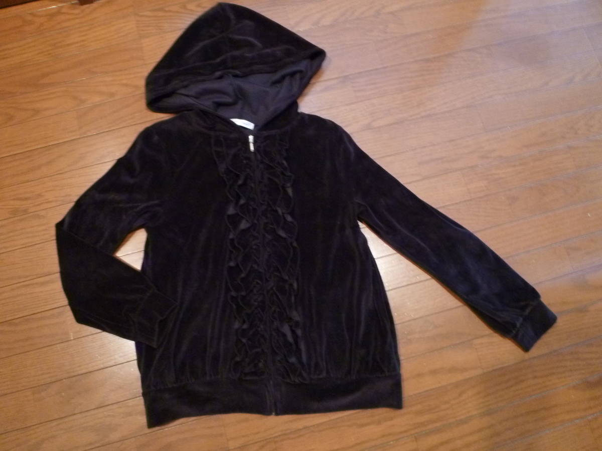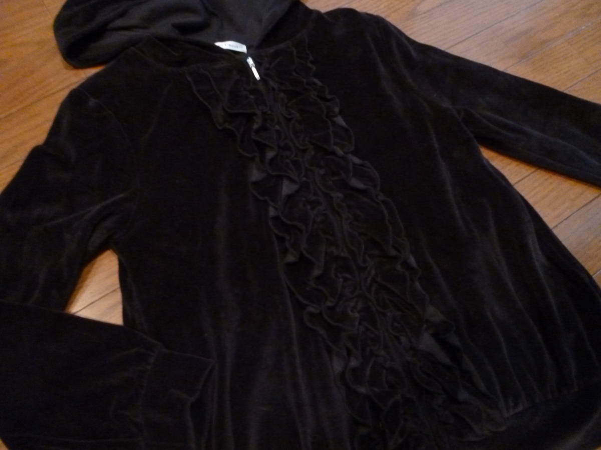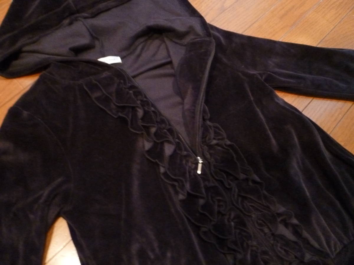 ☆ 綺麗なフリルパーカー ベルベット素材 黒 S ☆