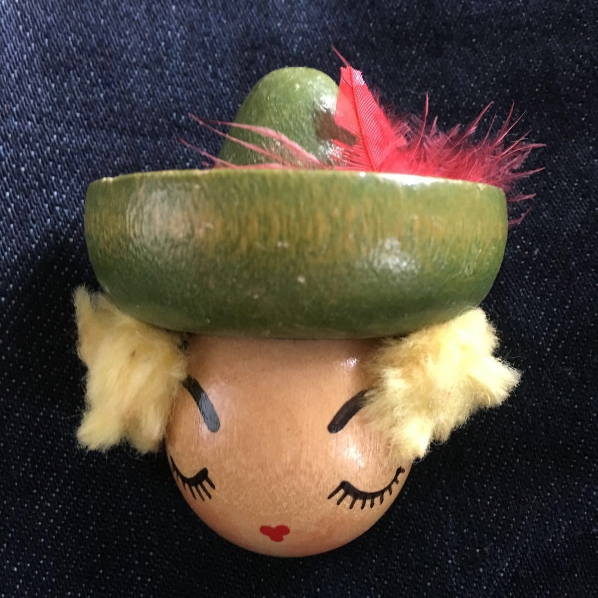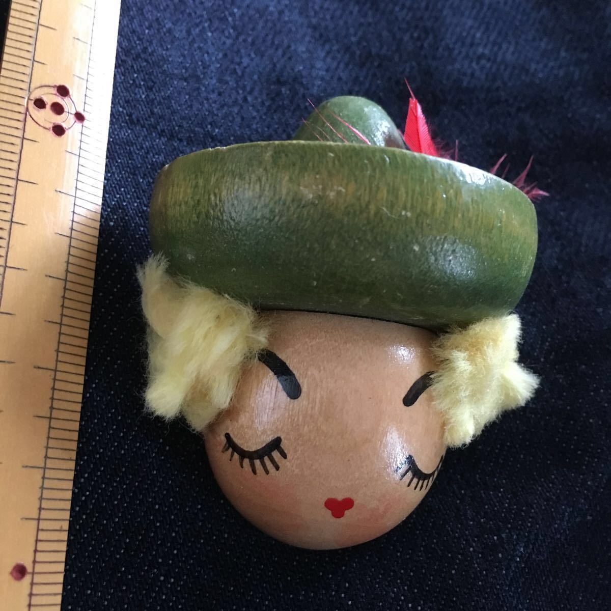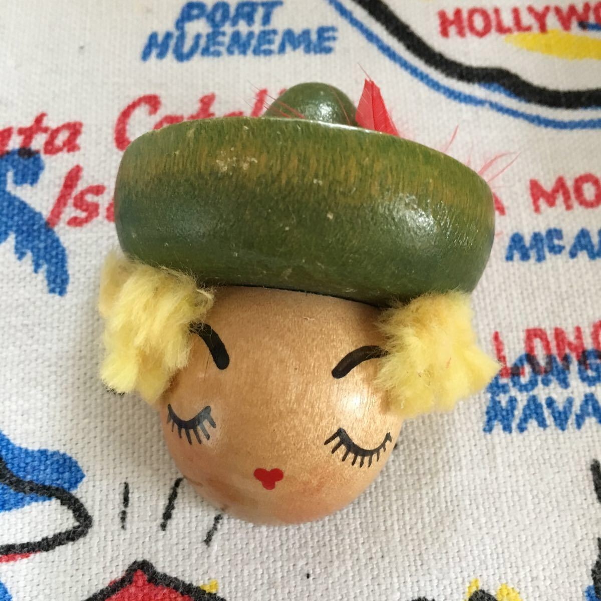 検索 ビンテージ50sアンティーク40s顔フェイス ノベルティー ブローチ木アクセサリー昭和レトロ ジュエリー ピンズpinロカビリー