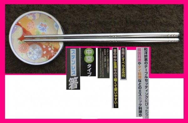 (韓国料理やタイ料理などのエスニック料理や和洋折衷のテーブルセッティングにぴったし!!!) ・ステンレス製だから清潔で丈夫な「お箸」です。 ・お箸は毎日使う物ですのでやっぱり、良いお箸がいいですよネ(^-^)☆ ・パーティーなどのおもてなしに!! ★★★ お得情報 ★★★ ・5膳以上セットなどいろいろなセットも、準備可能です。 (入札前に、ナビにて質問して頂ければと思います) ・気になるところがありましたらご質問してください。 ・他にも出品中ですのでご覧下さい (^-^)。 まとめていかがでしょうか。 ・それではよろしくおねがいします。 | |||