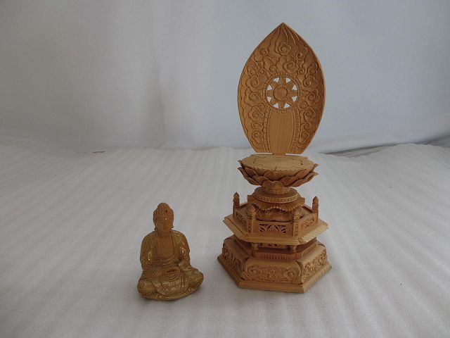 | 〇材質 木製仏具 〇サイズ 総高さ 約23.5センチ 総幅 約11.6センチ 奥行 約8.5センチ 釈迦如来像:高さ 約7.7センチ 幅 約6センチ 奥行 約5センチ 〇状態 長期保管品の為、保管時の小傷、擦り傷等ある場合がございます。 注意事項 〇手計測のため、サイズに多少の誤差がある場合があります。 〇こちらは1点のみの出品です。 | |||
