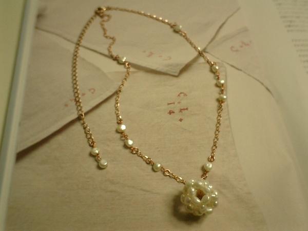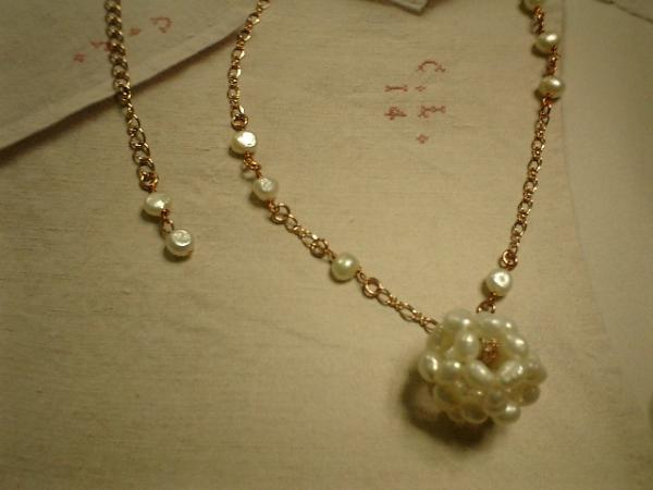 キュートで可愛い淡水パールのネックレスを作りました♪アンティークな雰囲気で作りました♪柔らかいピンクゴールドのチェーンでつないだバロックの形の淡水ぱーるです♪5ミリ位の小粒のパールなので合わせやすいと思います♪トップのパール玉は20ミリ位です。シンプルで飽きのこないいつまでも着けられるデザインを考えて作りました!ネックレスの長さは全長58センチ位で調節出来ます。お揃いのブレスレットも出品予定です♪ハンドメイドをご理解頂いてノークレーム、ノーリターンでお願いします