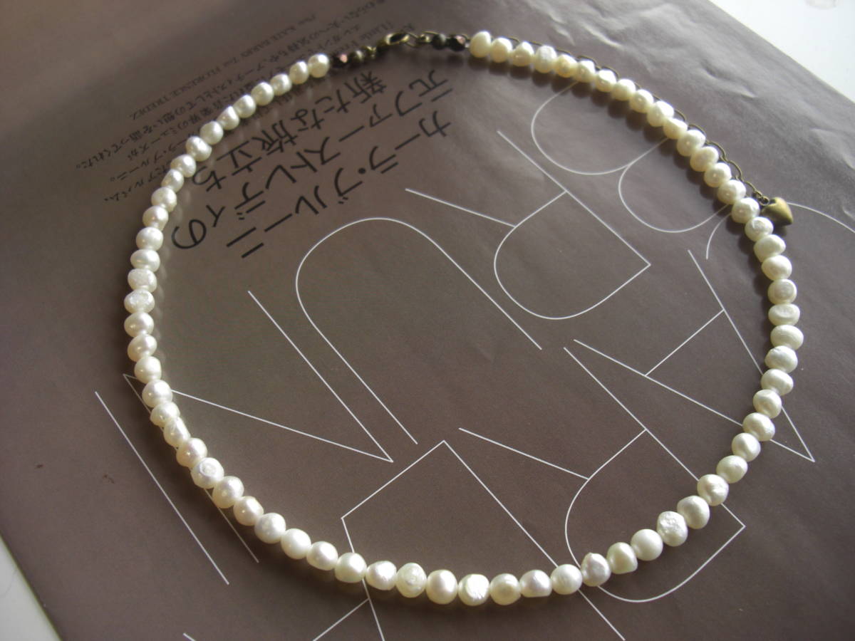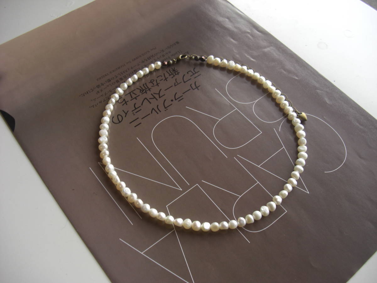 乙女の時間・・シリーズです♪バロックパールの魅力・・6ミリ位のホワイトパールを繋いでロマンチックな表情です♪長さは40センチ+アジャスター12センチで最長52センチ位です。お揃いのネックレスやブレスレットも出品しています♪シンプルで長く着けていただけるデザインに仕立てました♪ハンドメイドをご理解頂いてノークレーム、ノーリターンでお願い します