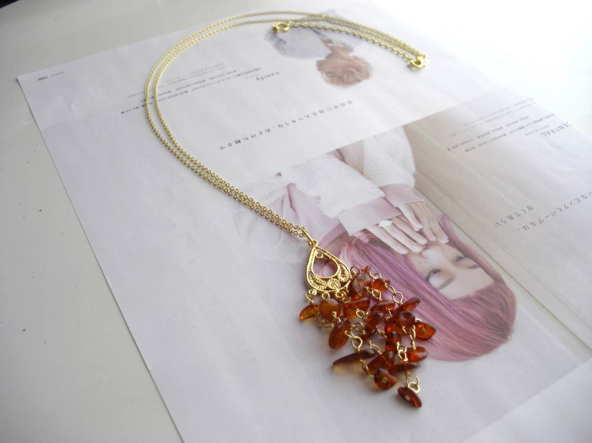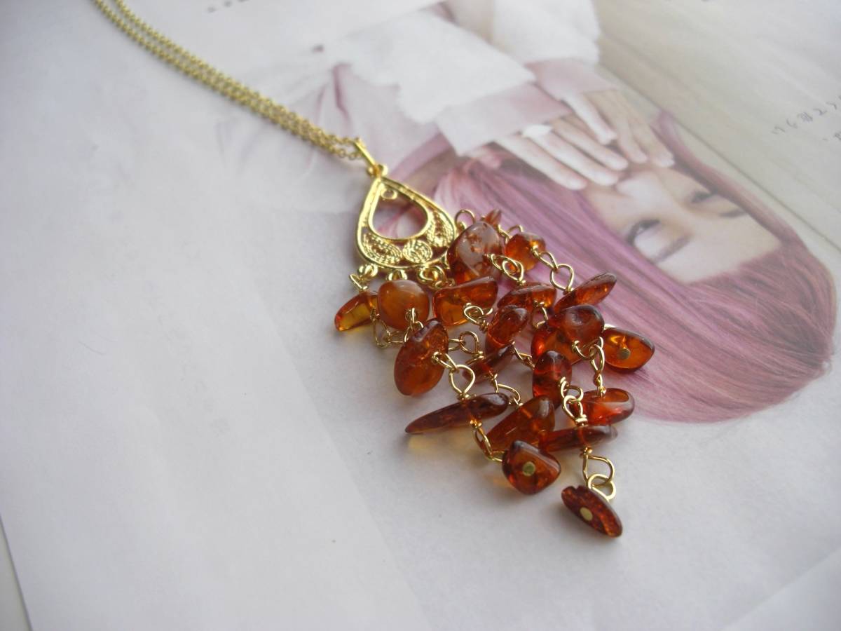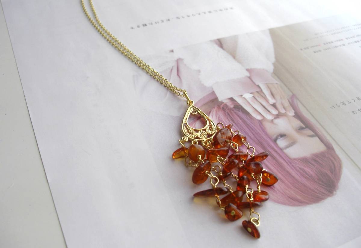乙女の時間・・シリーズです♪琥珀を紡いで・・シックな3連の琥珀のネックレスです♪シックな座金と華奢なチェーンを合わせて甘すぎない大人の表情です♪琥珀は4ミリから8ミリ位までのミニタンブルです♪長さは72センチ+アジャスター10センチで最長82センチ位です♪トップは8センチ位です♪お揃いのブレスレットやピアスも出品しています♪シン プルで飽きのこないいつまでも着けられるデザインを考えて作りました!ハンドメイドをご理解頂いてノークレーム、ノーリターンでお願いします