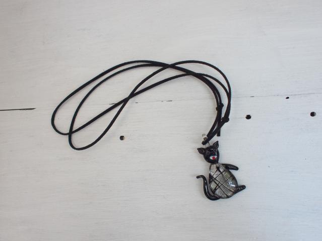 ガラスの黒ネコちゃんペンダント☆ネックレスアクセサリー