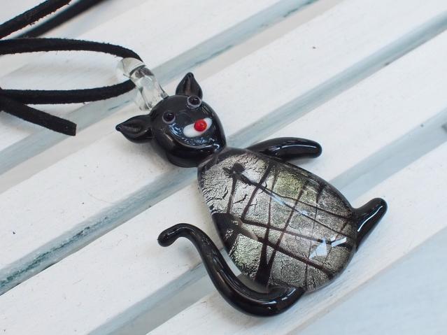 ☆ガラスの黒ネコちゃんペンダント☆ネックレスアクセサリー☆