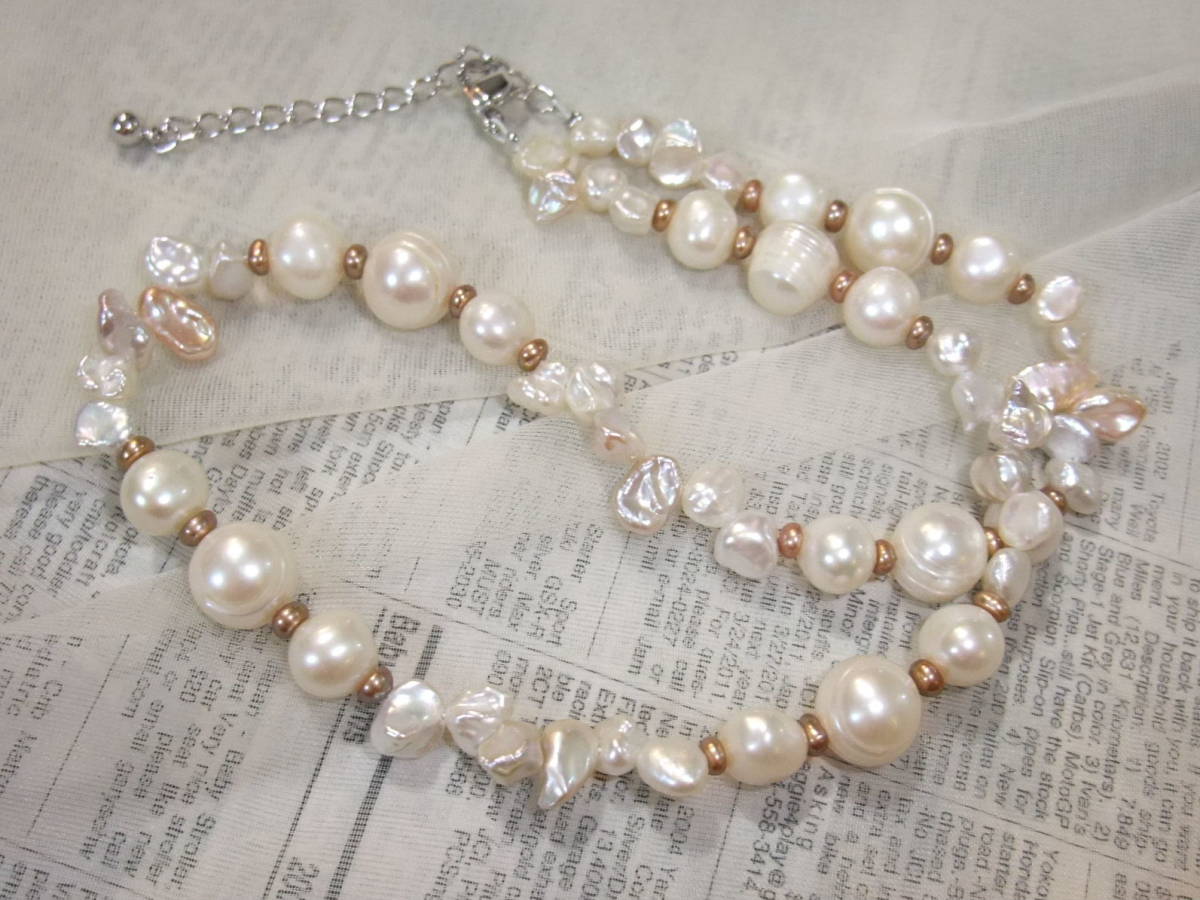 やや古い手持ちのものですが、この価格にしてはテリツヤかなりに綺麗な淡水真珠のルースをネックレスにしたものです☆プロの職人さんのきちんとした仕上がりだと思います♪ルースの質もなかなかに良いので、飽きたらばらしてお素材として使用するのもお得と思います☆☆