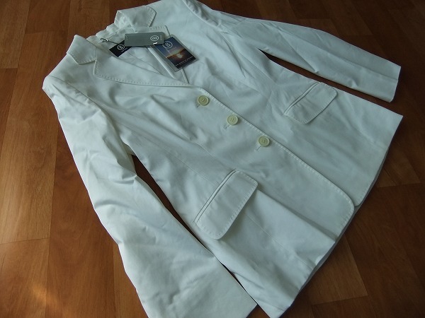 ★表記サイズ★ 38 ドイツ製 サントリコ ★実寸★ 肩幅41 袖丈59 身幅50 総丈66 (平置きの寸法のため、多少の誤差はご了承ください) ★素材★ 表地 コットン95 ポリウレタン5 裏地 レーヨン60 ポリエステル40 ★カラー★ ホワイト系 ストレッチ性でラインがキレイなデザインです 保管品のため、肩、裾、袖口などに薄汚れのようなくすみ感があります 襟に1か所点汚れがあります それ以外は問題ない状態です 上記と 保管しわ、自宅保管品にご理解いただける方にお願いします 自己紹介欄も御覧ください♪ |