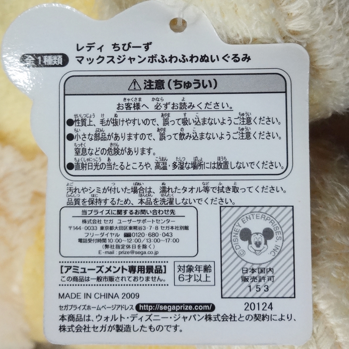 ★未使用保管品★プライズ非売品★全高約45cm・ディズニー・レディ ちびーず マックスジャンボ・ふわふわぬいぐるみ・ペーパータグ付き★