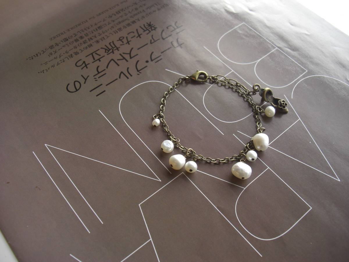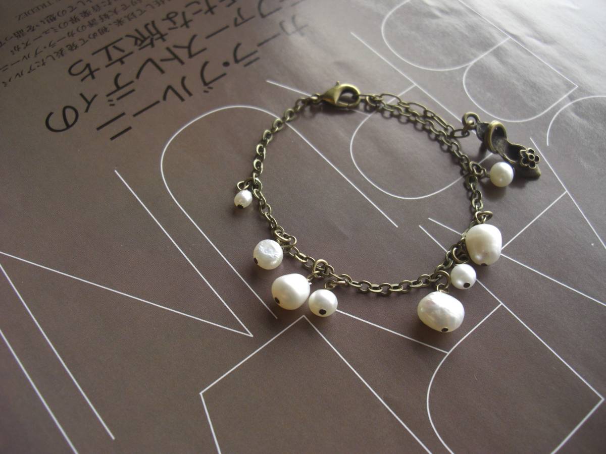 乙女の時間・・シリーズです♪バロックパールの魅力・・個性的なバロックパールのブレスレットです♪4ミリから8ミリ位までのバロックパールを ランダムに紡いでいます♪長さは16センチ+アジャスター6センチで最長22センチ位です♪お揃いのブレスレットやネックレスも出品しています♪シンプルで長く着けていただけるデザインに仕立てました♪ハンドメイドをご理解頂いてノークレーム、ノーリターンでお願い します