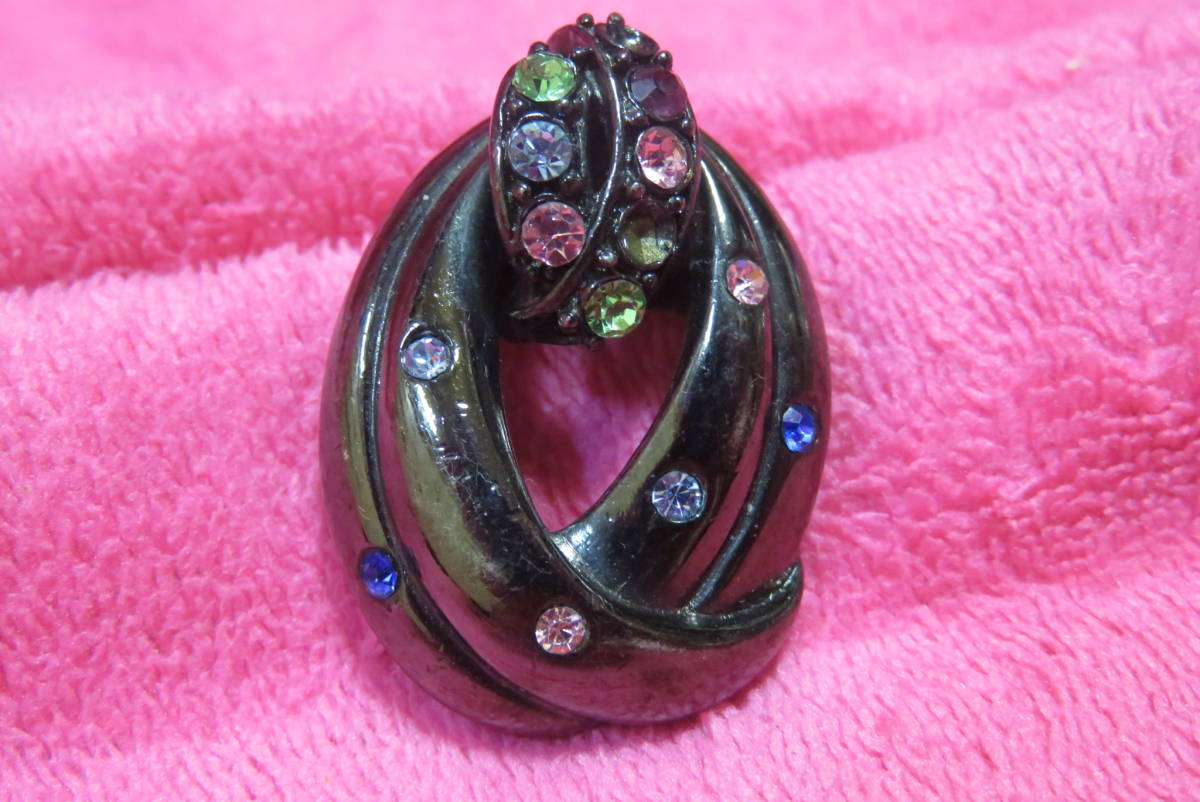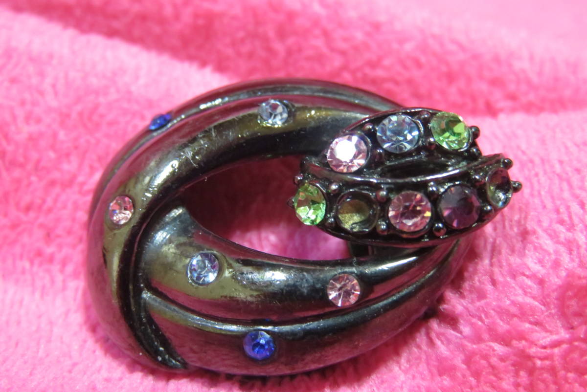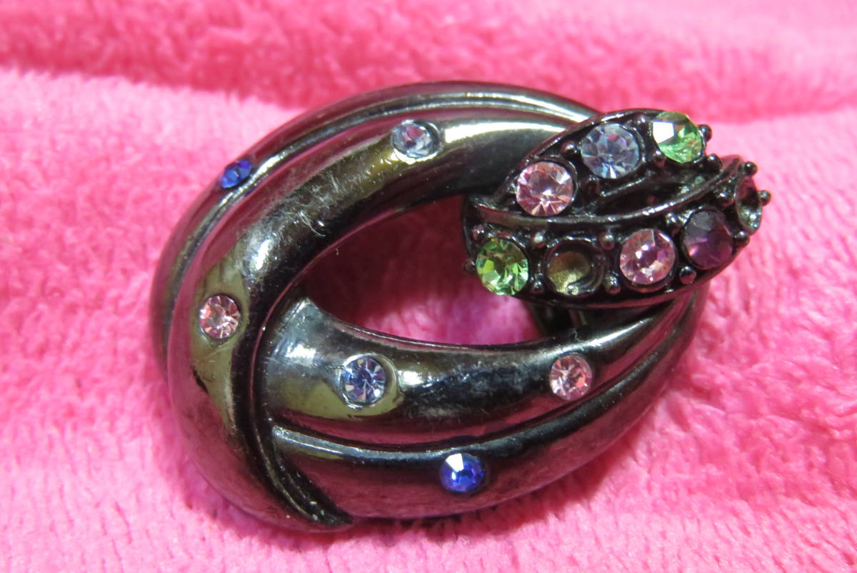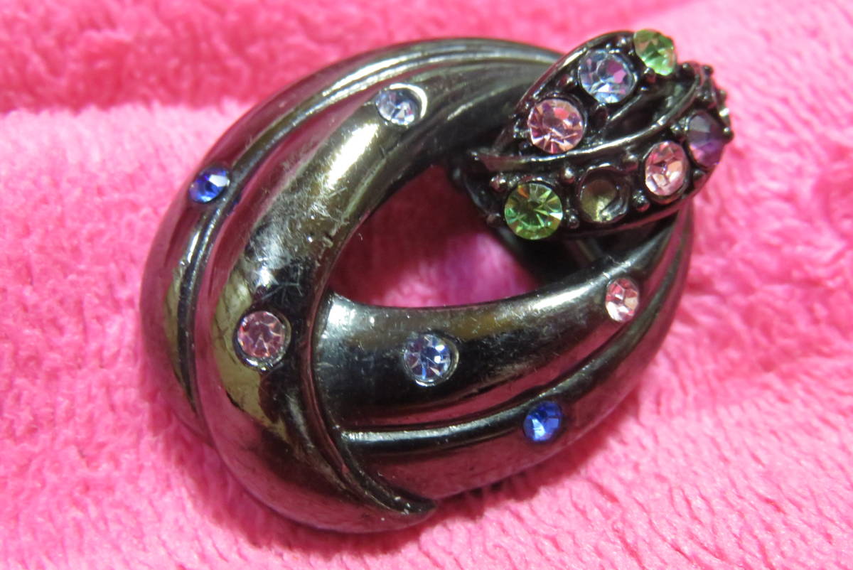 C1900    ブローチ   スカーフクリップ   ストールクリップ   アンティーク調   ラインストーン   石落ち