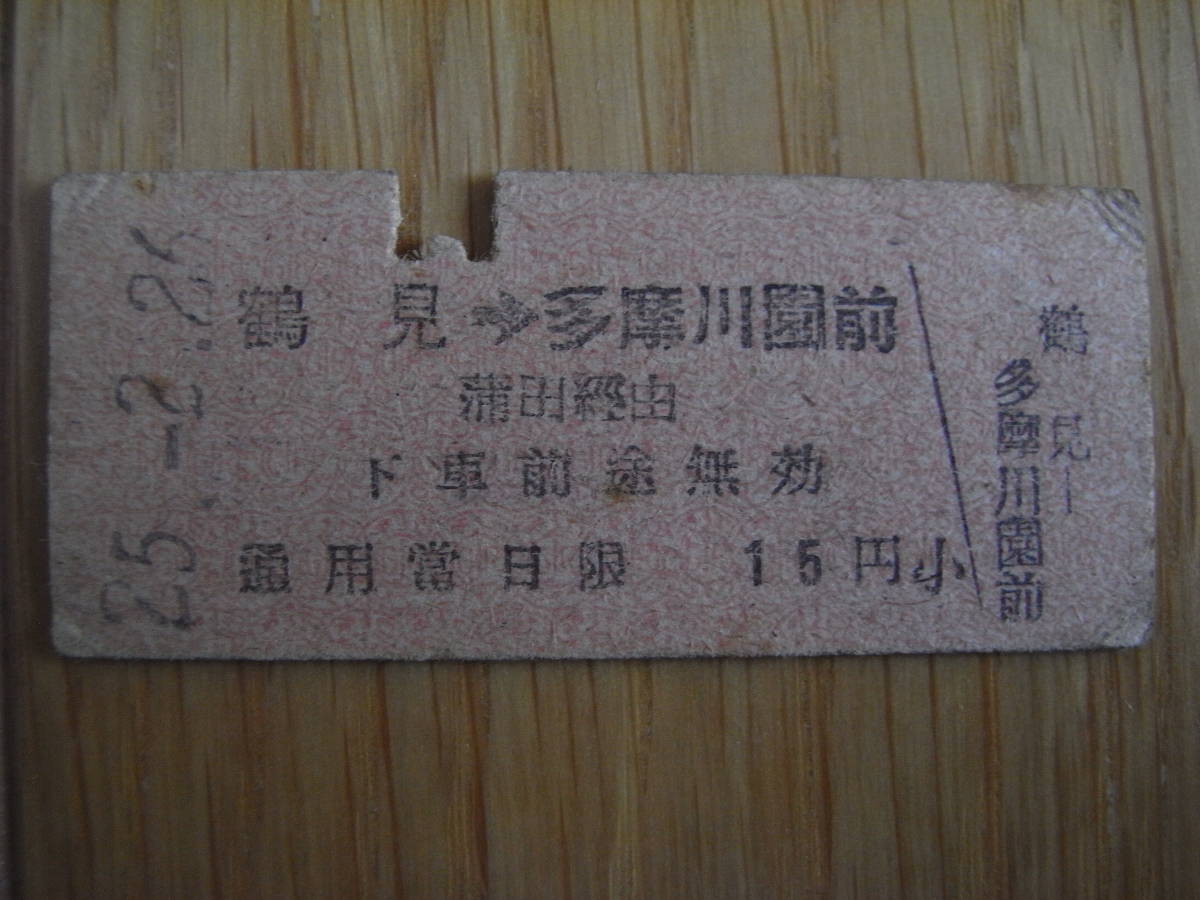 国鉄東京急行連絡乗車券 鶴見→多摩川園前 蒲田経由 15円 昭和25年2月26日 東急