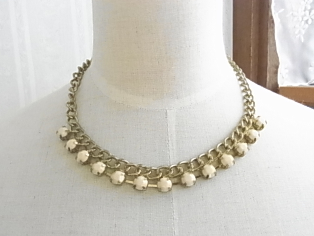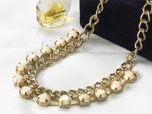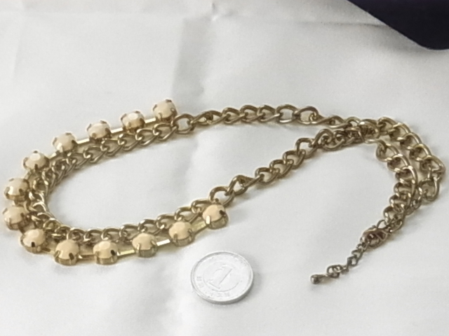 ベージュピンクのストーン調 ゴールドカラーとのコンビデザインの相性が抜群 キュートで品のあるネックレス☆☆