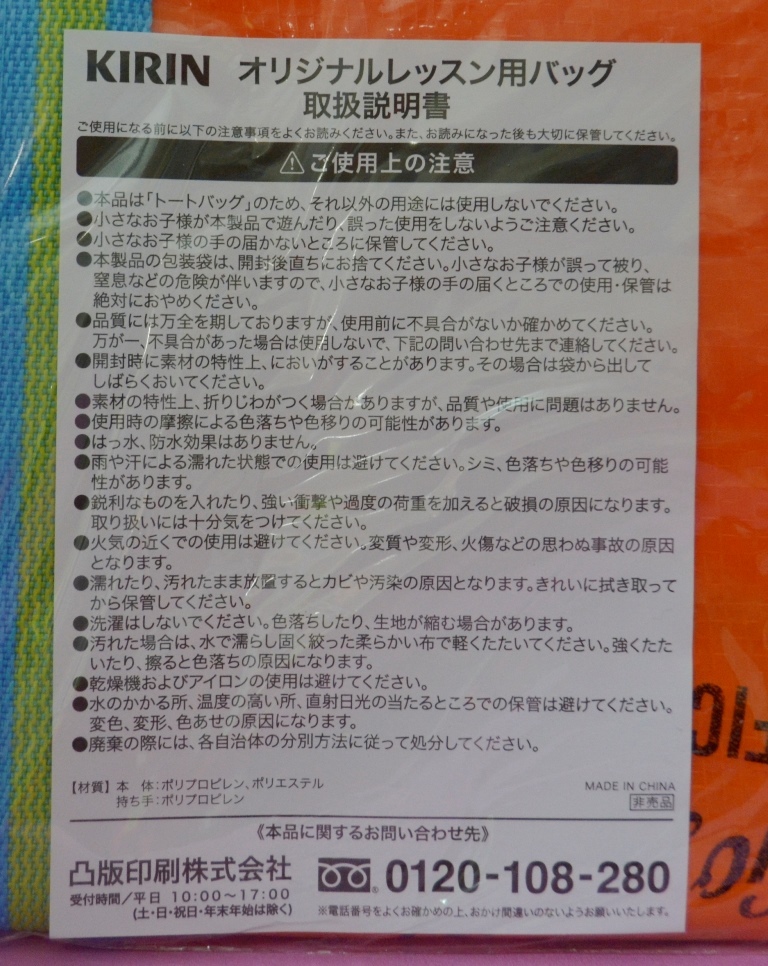 【新品未開封品】キリン オリジナルレッスン用バック(オレンジ) |