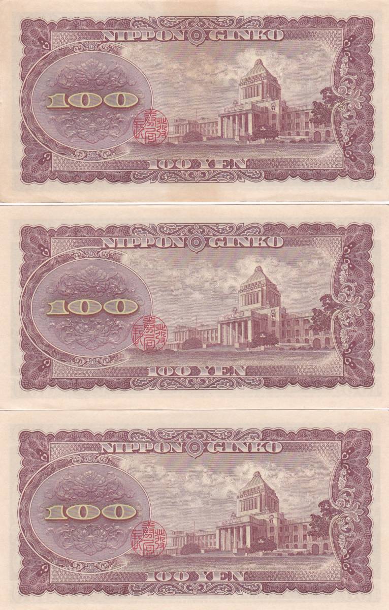 ◇板垣退助100円 流通品 2桁 連番3枚★