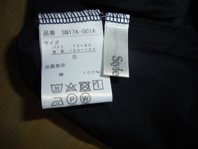 サイズ S。着丈52、身幅43