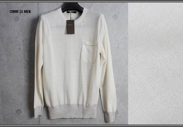 新品コムサメン秋冬 上質ウール ニット ハイゲージ セーターLライトクリーム 定価1.4万円/COMME CA MEN/2