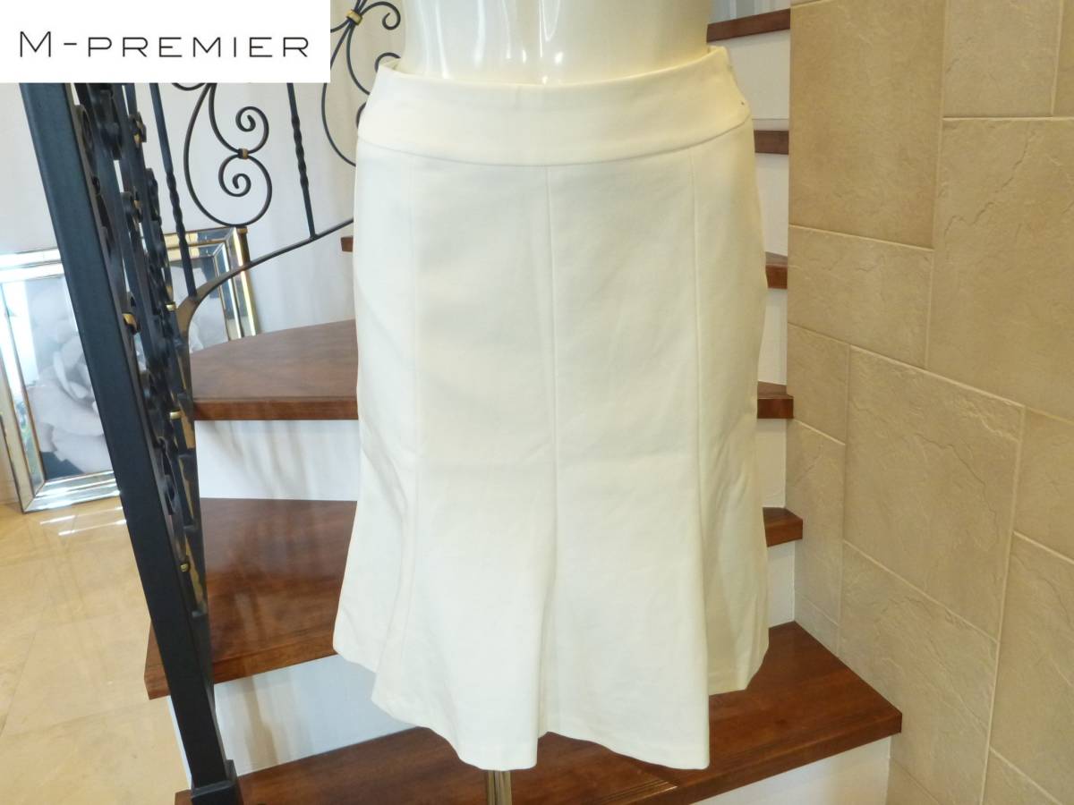 1.7万 美品 M-premier(エムプルミエ) Mプルミエ★ 白ホワイト 裾フレア スカート36  S相当