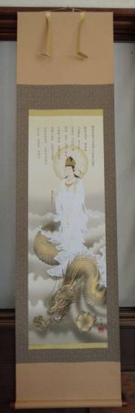 新品 掛軸 消災龍上白衣観音 掛け軸 竜 辰 龍 観音 厄除 開運