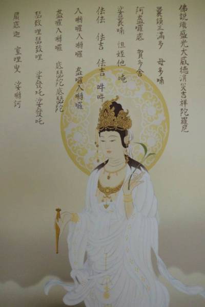 背景には仏教の気高い経文「消災呪」がしたためらて、