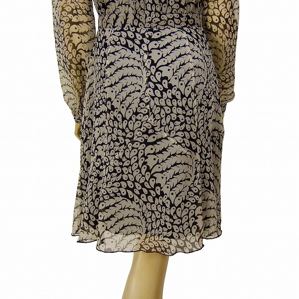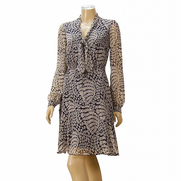 OP)新品同様*アナスイ アンソロポロジー ANNASUI ANTHROPOLOGIE★シルク(絹)100%×孔雀フェザー柄★シフォンワンピース★4(Mサイズ 9号位