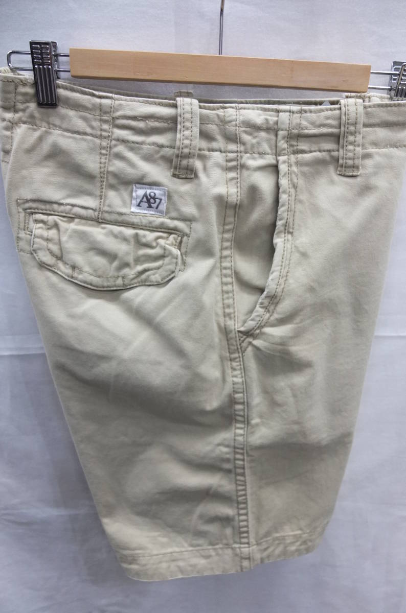★送料割引! ショートパンツ ゴルフパンツ ダメージ綾織綿布 W28実寸約79cm ベイジ系カーキ AEROPOSTALE★OUTLET未使用格安!