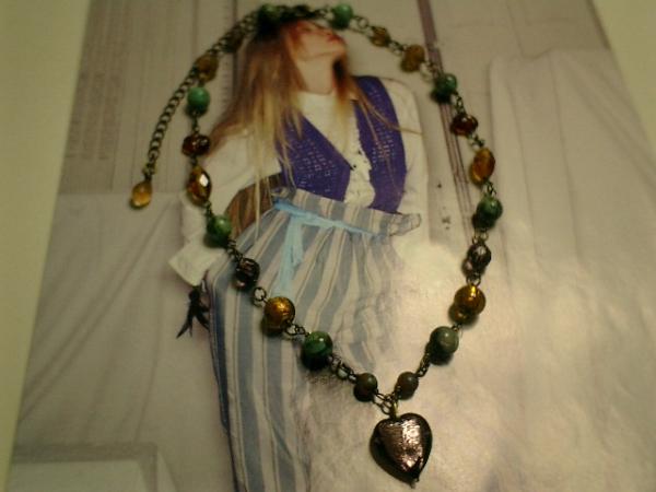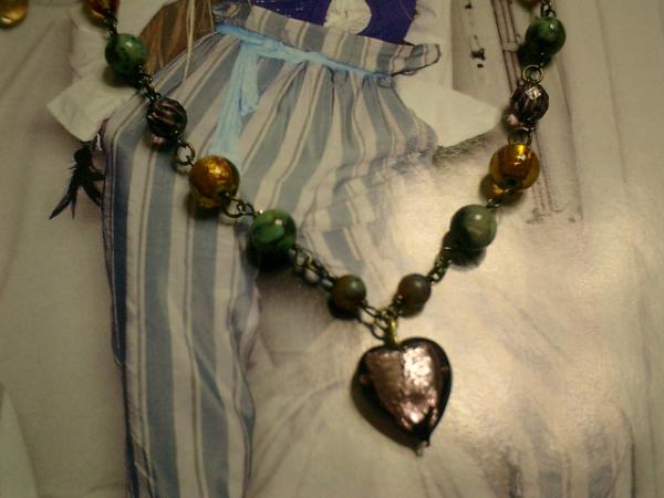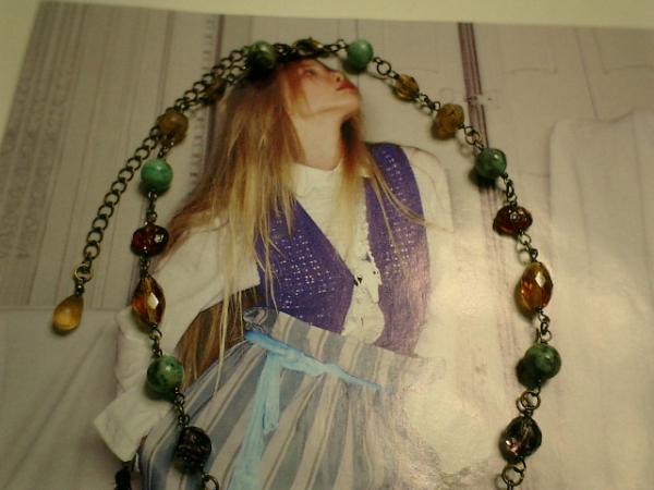 シックなターコイズとヴィンテージビーズとベネチアンビーズでネックレスを作りました♪神秘的な雰囲気でこれからの季節にぴったりです。ターコイズは8ミリでヴィンテージビーズは10ミリと8ミリ位です。チェコビーズは6ミリ位でシックなお色でまとめていますので合わせやすいと思います。トップのベネチアンビーズは15ミリ位です。シンプルで飽きのこないいつまでも着けられるデザインを考えて作りました!ネックレスの長さは39センチ+アジャスター12センチで最長51センチ位です。間に丸カンを使っていますので短くチョーカー風にも着けて頂けます。ハンドメイドをご理解頂いてノークレーム、ノーリターンでお願いします