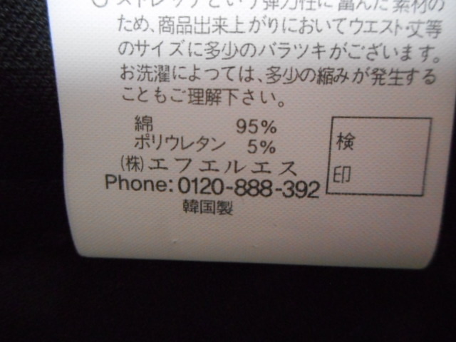 | 【ブランド・形態】 未使用品 エフエルエス ストレッチ ブーツカット マタニティパンツ サイズ34です。 【カラー】 ブラックです。 掲載の実物写真はPC環境や光の加減により実物と色合いが若干異なる場合があります。 【特徴】 妊娠中もオシャレしたい女性にオススメのストレッチブーツカットマタニティパンツ。 おなか周りは伸縮性のある生地が優しくフィットする仕様になっています。 高密度繊維でストレッチが効いているので、動きやすさも◎。 履き口内側にはアジャスターゴム入りで、ズリ落ちを防ぎます。 【状態】 購入して自宅保管していた未使用品になります。汚れ・しみなど有りません。 【素材】 綿95%、ポリウレタン5% 【記載サイズ】 サイズは34となっておりますが実寸も参考にして下さい。 【実寸サイズ】{平置き採寸} 縮みや伸びが生じている場合がありますので実寸サイズをご参照ください。 ウエスト : 約 ~85cm (半身×2のサイズ) わたり : 約 24cm (股下5センチ部分を採寸) 股上 : 約 36cm 股下 : 約85cm (内股の縫い目に沿って裾まで採寸) 裾幅 : 約 24cm 尚、素人採寸です多少の誤差はご了承下さい。 必ずご自分のボトムスと比較して下さい。特にローライズの場合、 股上を参考にウエストラインの位置を確認してください。 | |||