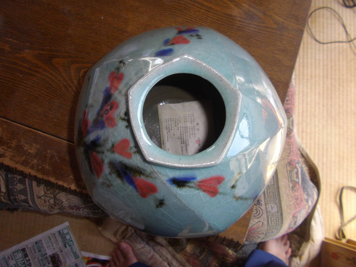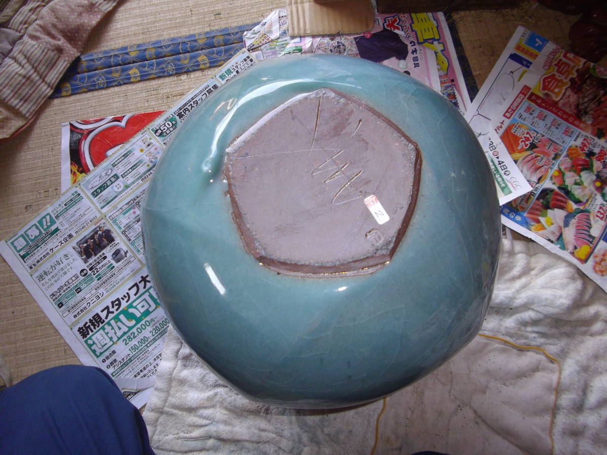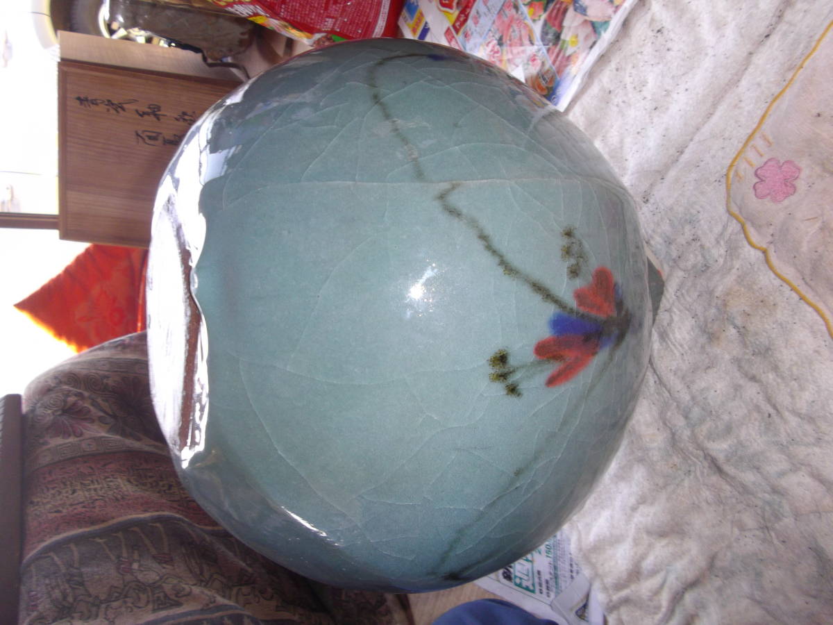 益子焼、成良仁作の最高傑作、青磁釉鉄絵壺。共箱に仁の箱書きあります。珍しい、かき落とし壺で、絵付けも田村耕一に似て、独創的です。なお今回、値下げ致しますので、NC、NRでよろしくお願い致します。