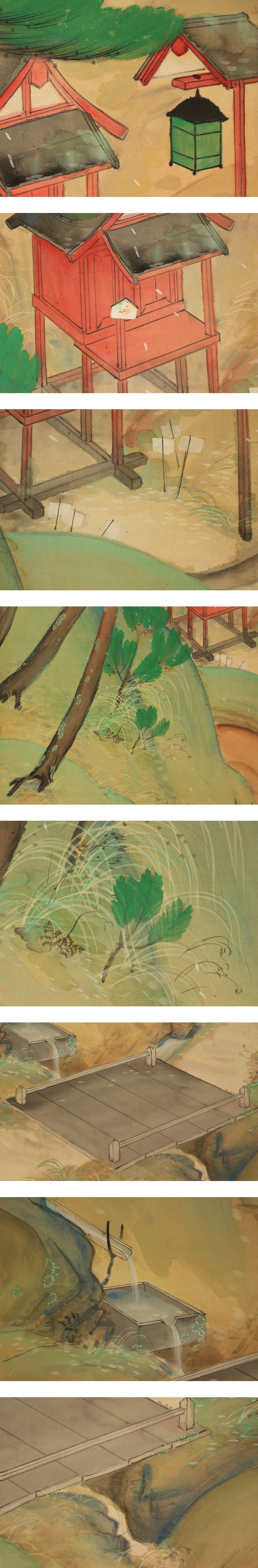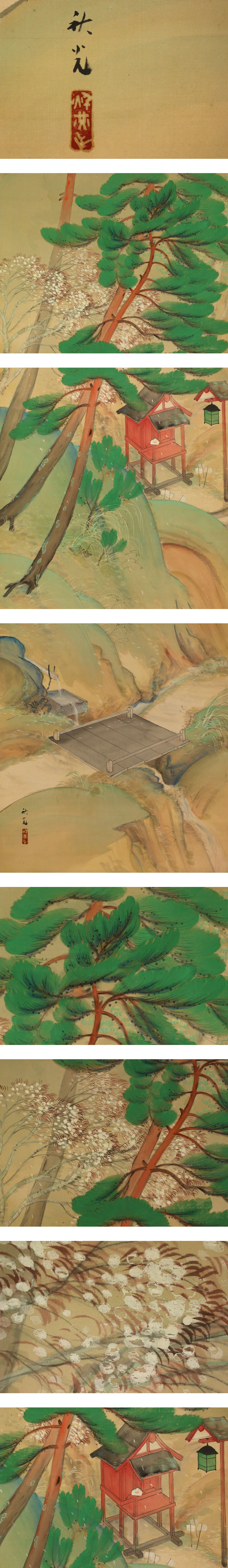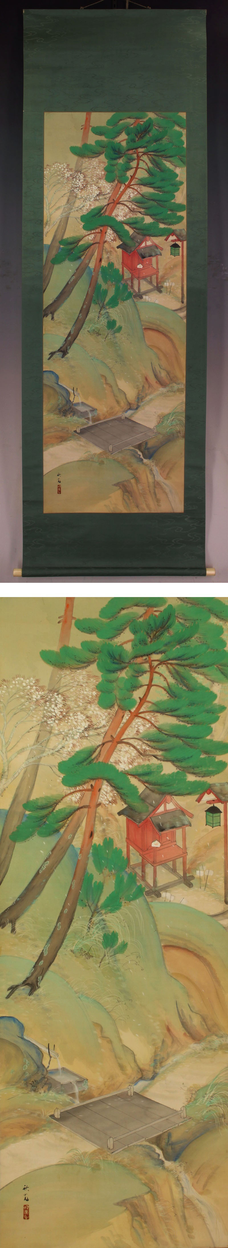 | №1712171 名品【真作】吉田秋光【松桜下社図】◆絹本◆掛軸 | |