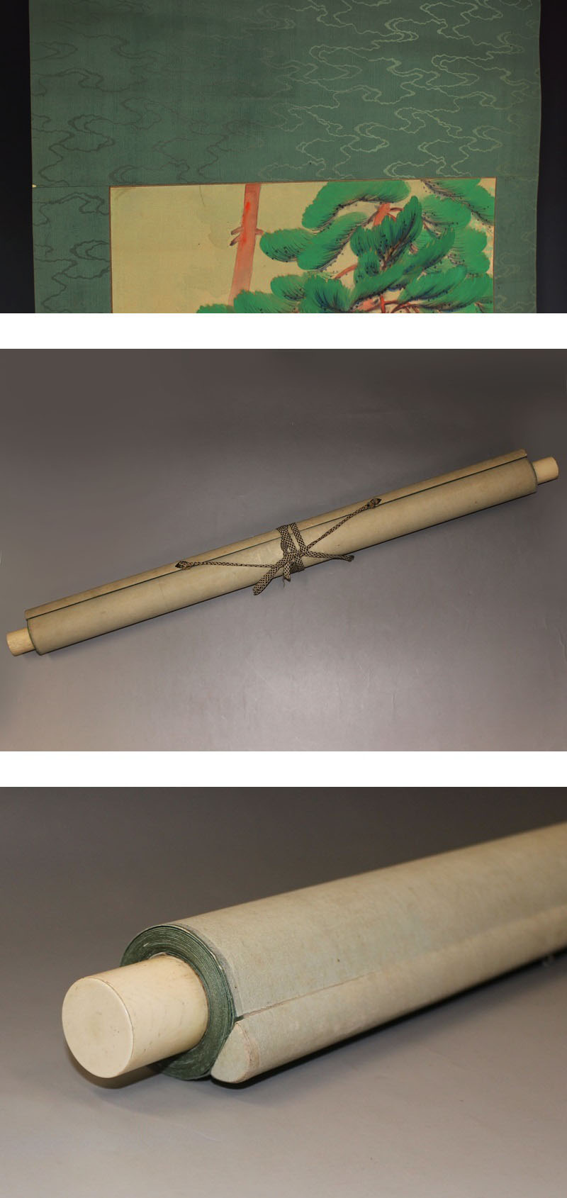 吉田秋光 よしだ-しゅうこう(1887-1946) 大正-昭和時代の日本画家。 明治20年4月5日生まれ。松岡映丘にまなぶ。大正6年文展に初入選。11年帝展で「秋のけはひ」が特選となる。昭和10年国画院にくわわり,13年伊東深水らと日本画院を結成した。昭和21年6月21日死去。60歳。石川県出身。東京美術学校(現東京芸大)卒。本名は清二。 本紙は、シミ、軽い折れがあります。 表装は、シミ、軽い汚れ、軽い折れ、軽いシワ、剥れ、軸先に少し汚れ・欠け、軸紐に修復痕があります。 【サイズ】 作品 横約52cm×縦約148cm 表装 横約67cm×縦約210cm |