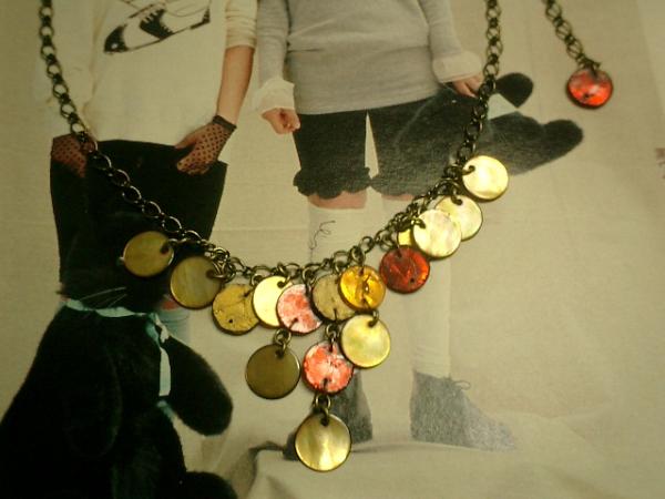 可愛いアンティーク色のマザーオブ・パールとヴィンティージのシェルパーツのネックレスです♪落ち着いたアンティーク色と暗めの赤とオレンジのヴィンティージのシェルが大人っぽい可愛い雰囲気です♪シンプルで飽きのこないいつまでも着けられるデザインを考えて作りました!ネックレスの長さは全長55センチ位で長くも短くも着けて頂けます♪シェルは11.5ミリ位です。ハンドメイドをご理解頂いてノークレーム、ノーリターンでお願いします