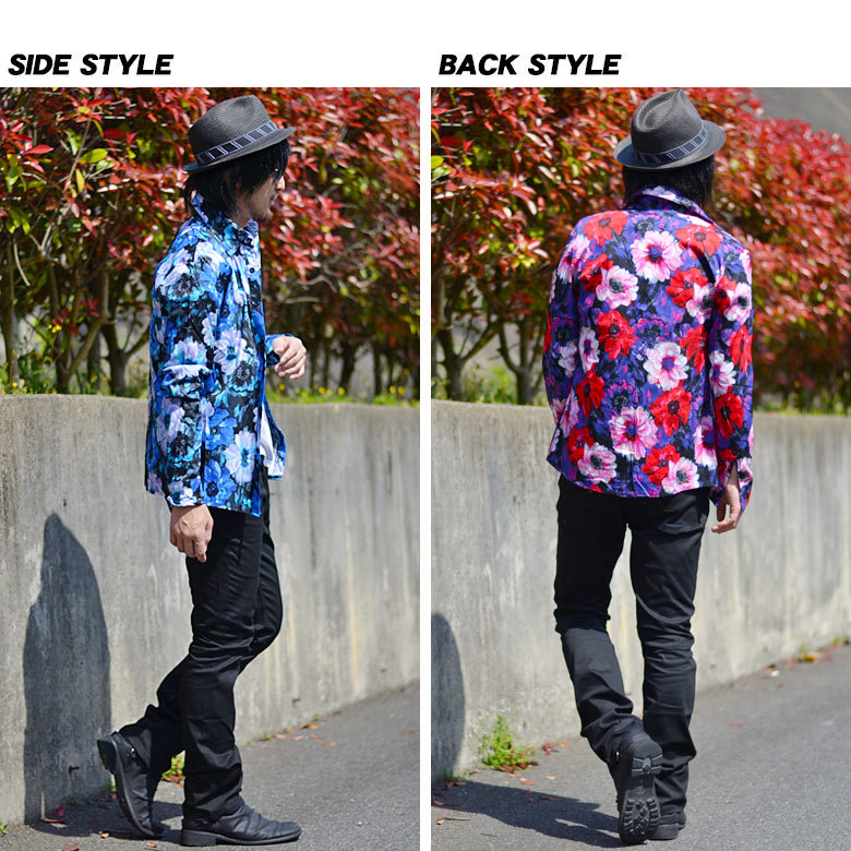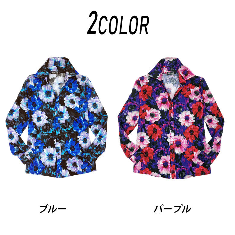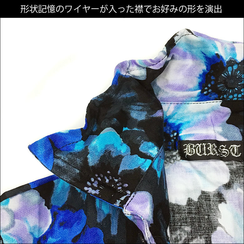 総柄/ボタニカル柄/花柄/襟ワイヤー/袖口ワイヤー/ガラシャツ