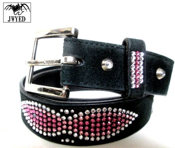 JWYED ジェイド スワロフスキー ラインストーン ブラックスウェードレザーベルト